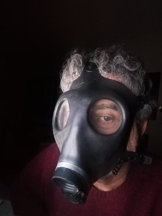 Después nos retirabamos de la escena sin decir nada. De esas mascaras de gas que usábamos para esa performance yo me quede con tres. Un poco en broma, y un poco en serio, siempre que hablaba del tema decía: Me las quedo por las dudas. Tal vez tenga que usarlas en el futuro…