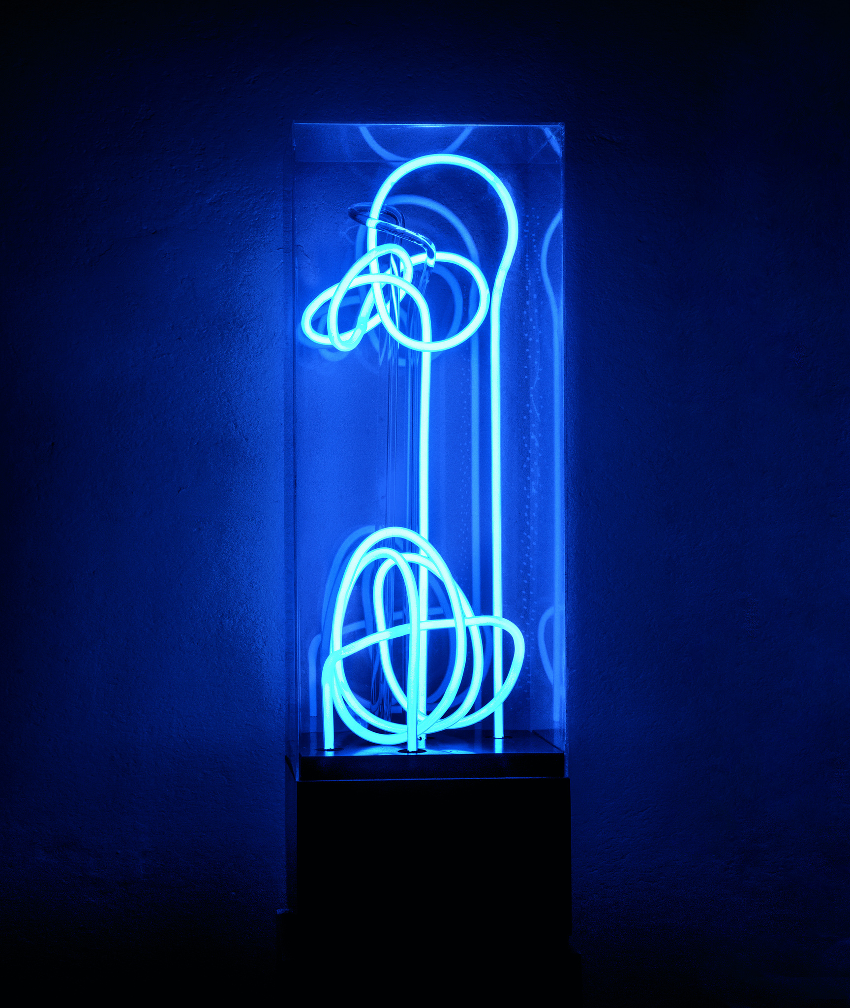 La exposición, curada por Rodrigo Alonso, incluye piezas destacadas de diferentes períodos de la producción como la escultura articulada Röyi (1944), pinturas de marco recortado y una obra de gas neón, características de los primeros años Madí.