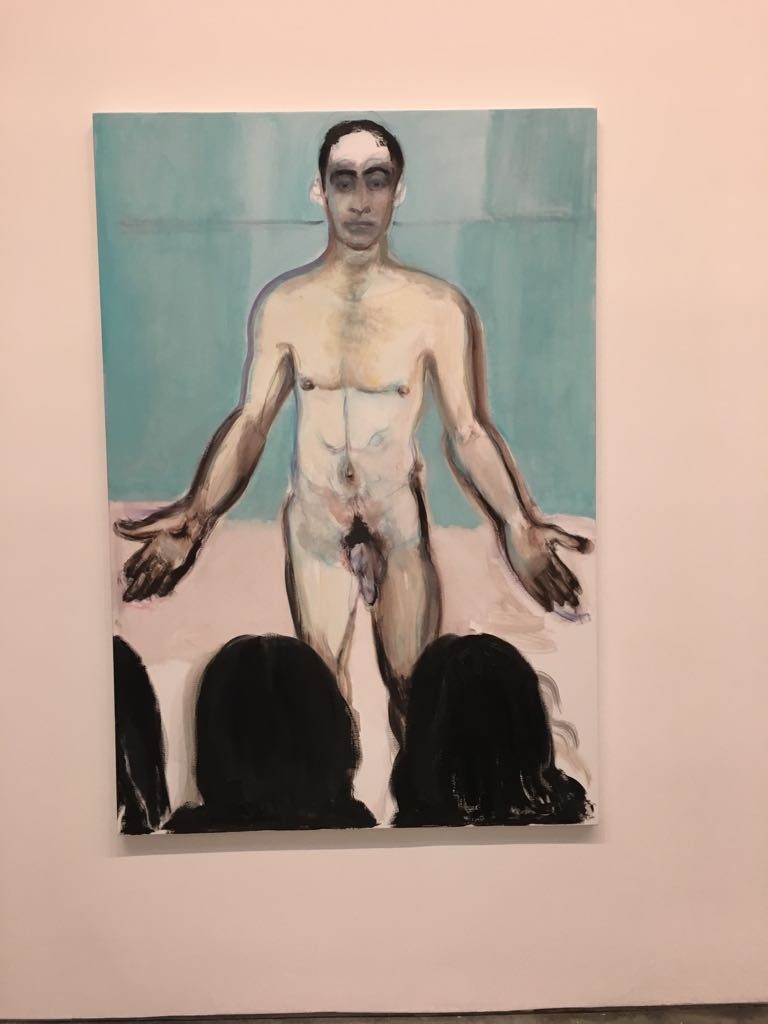 Dumas, que a veces pasa meses sin pintar y luego vuelve repentinamente a una imagen que escondió hace mucho tiempo en busca de inspiración, es conocida por sus retratos. En Zwirner expone varias pinturas nuevas, incluyendo lienzos monumentales de figuras desnudas, así como retratos más pequeños e íntimos.