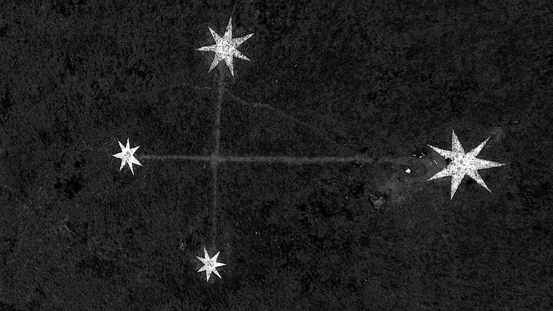 Las fotografías tenían una pregnancia particular porque una sola foto a color incluía la Cruz en el cielo, la Cruz en la falda del nevado, y sendos reflejos en una laguna localizada cerro abajo. Es decir que, sin post producción, una vista presentaba un total de cuatro constelaciones idénticas imposibles de ver en la naturaleza, pero que ahí estaban. Para realizar esta réplica o espejo de la constelación, meses antes Bonadeo había viajado a La Pampa para testear la producción de las enormes estrellas de sal con cordeles.