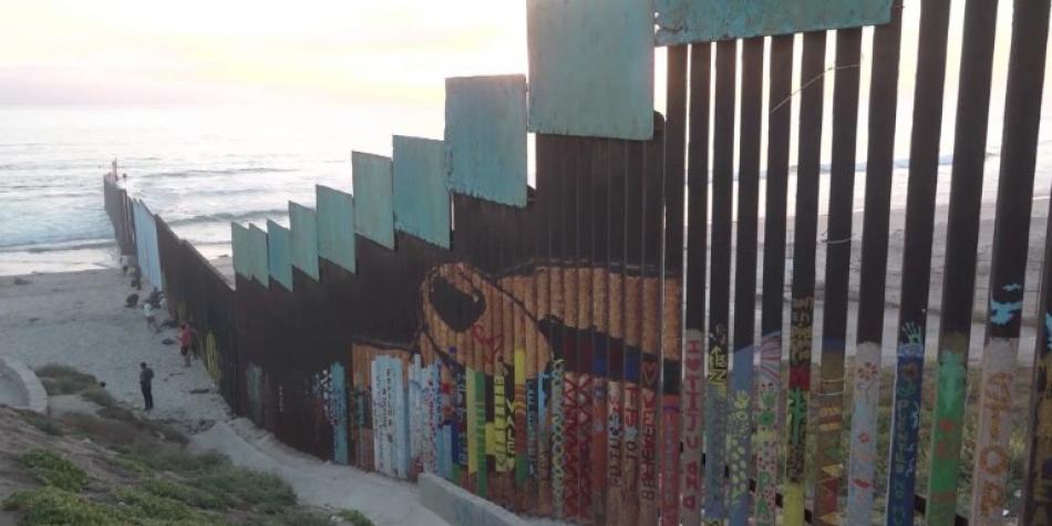 La imagen de una mano extendida que invita a ser estrechada entre mariposas que revolotean alrededor convive con la de un cerro de cráneos coronado por una cruz azul acero. Esta es la gráfica de este mural de México en la valla que los divide con Estados Unidos. Alegría y dolor se intercalan como en la vida misma. Este mural, sin embargo, es singular pues medirá dos kilómetros lineales, aspirante al récord Guinness, y viene siendo pintado por los propios habitantes de algunas de las ciudades que se erigen a lo largo de la frontera noroccidental de México con Estados Unidos, partiendo de la mítica Tijuana, fronteriza con San Diego.